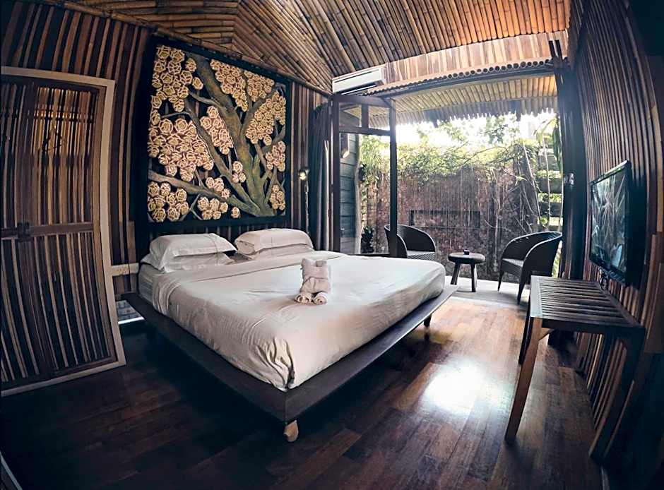 Spacious, air-conditioned suite features a suspended single bed and king-sized bed, flat-screen TV, electric kettle and mini-bar. A private bathroom comes with a open-air shower, bathtub, free toiletries and hairdryer.
